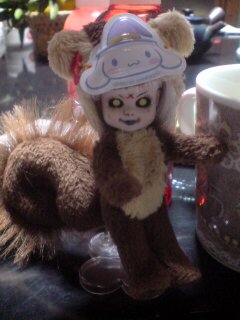 もしかしたら、リスの着グルミ自体も着れるんじゃん?と、やってみたところ、ちょいキツだけど着れたー♪