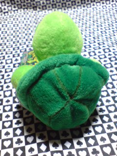 とがってる角のとこに、某JUNの帽子のように紐とボンボン付けたいと思ったけど、黒い毛糸が手元にない。残念。