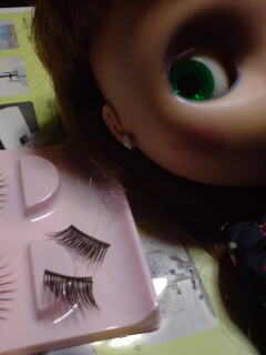 つまようじにボンドをつけて、、ドールを逆さまに持ち、マツゲの裏側に軽くふれる感じでささっとボンド付け。