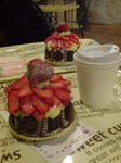 歩き回ったので一休みしようと沢山あるデザート屋さんの中から、可愛いお菓子の家ケーキを注文。