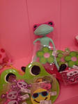 カエルの服も欲しかったけど、2千円もするので服は手作りすることにして、ピンクのメガネ?と、靴(おたまじゃくしの形)も購入。
